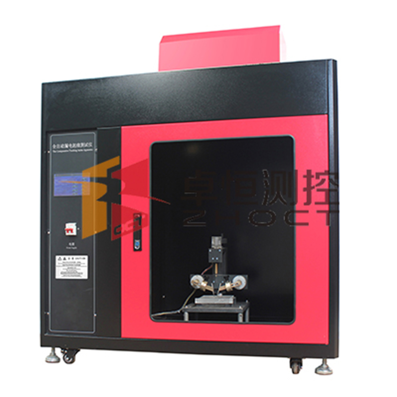 测量在电压最高达600V时固体电气绝缘材料在电场作用下表面暴露于含杂质的水时的相对耐电痕化性能。当将电压施加到放在材料表面上规定 的电极装置之间,且电解液以规定的时间间隔滴到两电极之间时,在此试验情况下可能产生电痕化。引起材料破坏所必需的液滴数随着施加电压的减小而增加,且在低于某一限值时,不发生电痕化。当材料在最高试验电压下也未电痕时,可以有不同程度的腐蚀,且腐蚀深度能测出。某些材料能在试验时燃烧。