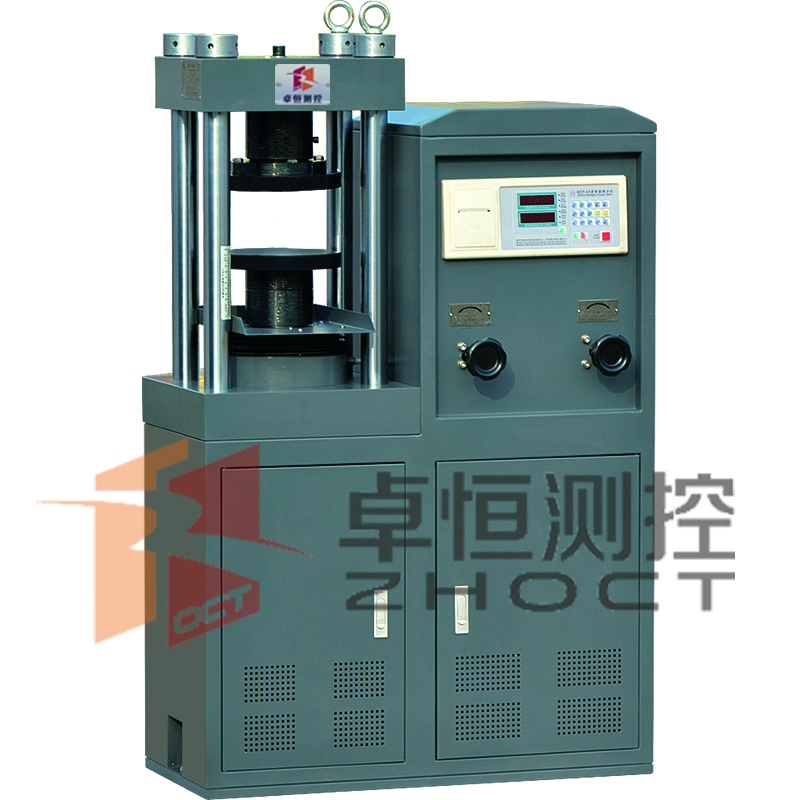 HG-YS1000型电液式压力试验机是采用了液压动力源驱动,采用智能测控仪表对试验数据采集处理,其由试验主机、油源(液压动力源)、测控系统、试验器具四部分组成,试验力1000kN,试验机准确度等级优于1级。